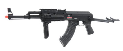 Modeled after the Soviet designed gun, the AK-47 series of assault rifle is the most widely produced small arms to date. From the AK-47 to the AK-74, this assault rifle is in use by the armies of countless countries around the globe. Jing Gong continues the AK-47 legacy, introducing the Electric Jing Gong AK-47S Tactical Rifle Airsoft Gun. This Electric Airsoft Rifle has a full metal body and metal gear box making it very sturdy and durable. Able to fire in both semi and full automatic firing modes you can pick and choose your shots wisely or go in guns blazing. What really makes this AK-47 unique is the folding stock and integrated rail system that will allow you to add on all of your favorite accessories like the included folding fore grip! You can adjust the guns design by folding the rear stock or extending it making it perfect for any style of combat! With a 600 round magazine and fire power of 460 FPS this AEG is the perfect companion to any soldier in the heat of battle! So what are you waiting for? Hurry and get the Electric Jing Gong AK-47S Tactical Rifle Airsoft Gun today!