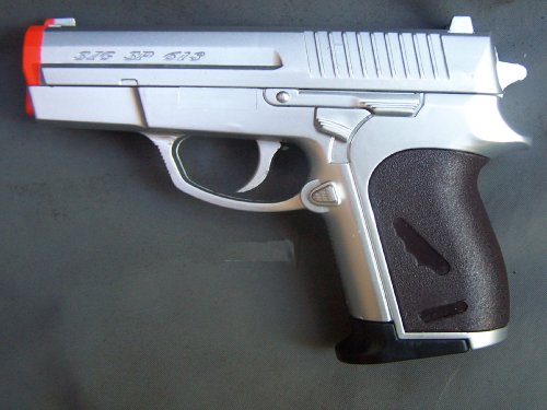 Compact spring pistol.Easy to cock, Nice quality. Shoots around 150 FPS, 5.5" X 4.3". THe clip holds 12 BB's. Toy Qualitiy Airsoft Pistol.This is for a silver airsoft pistol. AIRSOFT DISCLAIMER ALL AIRSOFT GUNS ARE REQUIRED BY LAW TO HAVE THE TIP 1/4 INCH OF THE BARREL PERMANENTLY COLORED BY ORANGE BLAZE. ALL OUR AIRSOFT FOLLOW THIS LAW.PLEASE CHECK WITH LAW ENFORCEMENT FOR ANY QUESTIONS YOU HAVE REGARDING REGULATIONS AND LAWS ON AIRSOFT GUNS. WE WILL NOT BE RESPONSIBLE IF YOUR SHIPMENT IS HELD.AIRSOFT PRODUCTS CAN CAUSE SERIOUS INJURY OR DEATH PLEASE READ THE FOLLOWING BY MAKING A PURCHASE OF THE ITEM IN THIS LISTING YOU AGREED TO THE FOLLOWING LISTED BELOW. I AM AT LEAST 18 YEARS OF AGE. I AGREE THAT I WILL TAKE FULL RESPONSIBILITY FOR WHAT I DO WITH THE ITEM LISTED IN THIS AD AFTER THE SALE. I THE BUYER OF THE ITEM LISTED ABOVE HEREBY STATE THAT ALL STATEMENTS HAVE BEEN READ AND I FULLY UNDERSTAND THEM. I HOLD THE VENDOR AND ALL OF ITS AGENTS HARMLESS OF ANY AND ALL LEGAL ACTION ARISING FROM MY PURCHASE FROM THE COMPANY SELLING THIS ITEM I HAVE READ AND UNDERSTAND ALL WARNINGS, LIABILITIES AND WARRANTIES RELATED TO THE PRODUCT OFFERED IN THIS SALE AND HOLD HARMLESS THE VENDOR AND ALL OF ITS AGENTS OF ANY AND ALL LEGAL ACTION BY PURCHASING THIS ITEM I HAVE ACCEPTED THE TERMS AND CONDITIONS EXCLUDING THE SELLER FROM ANY LIABILITY OR LEGAL ACTIONS FOR WHAT YOU DO WITH YOUR PURCHASE
