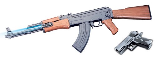 Spring AK47Y Assault Rifle And Spring Pistol Combo, Flashlight, Full Stock Airsoft Gun Feature